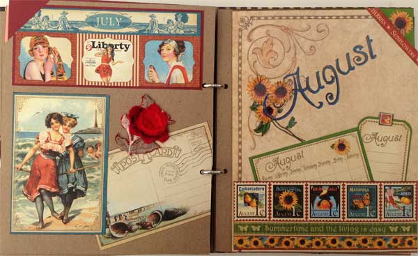 I made an album from Graphic45 papers "Place in Time" 12x12. Obviously, these papers make a kind of yearbook, and I imagine that the book can be used for writing down birthdays and which presents have been given.